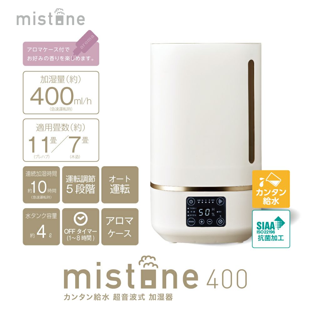 他の画像を見る SALE 送料無料 ◆冬トク◆カンタン給水 超音波式加湿器 mistone(ミストーン) 400 ホワイト DKW-2540WH【KA】 通常価格 ¥ 9,878 のところ 販売価格 ¥ 7,900 税込 カートに入れる お気に入りに登録する