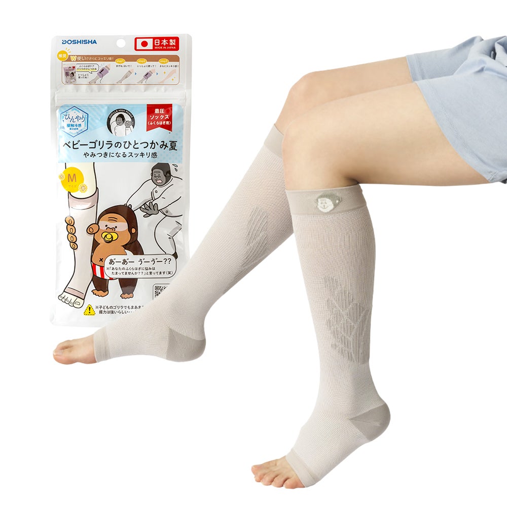人気アイテム「ゴリラのひとつかみ」と組み合わせて使うことで、さらにスッキリ感を実感できるふくらはぎソックス。 ひんやり接触冷感素材使用の夏バージョンが新登場! ■特徴 ・熱を逃しやすい素材と通気性抜群の編み方でムレにくい! ・部位ごとに異なる着圧設計。最大21hPaで無理なくスッキリ ・足首にかけて段階的に圧を加えて、じっくり足ケア ・左右独立設計でそれぞれの足にしっかりフィット ・靴下タイプなので、着圧しながら冷え対策もバッチリ ・ゴリラのひとつかみとW使いで“さらに痛きもちイイ”リフレッシュ体験 ■いつでも使える3WAY仕様 ・【朝】ルームソックスとして ・【昼】「ゴリラのひとつかみ」と組み合わせてさらにスッキリ感 ・【夜】つま先が開いているからムレにくく、そのままおやすみソックスに ■こんな方におすすめ ・一日中同じ体制で仕事をしている方 ・立ち仕事など脚を酷使するお仕事をされている方 ・強い締め付け感が苦手な方 ・“やさしい圧”でケアしたい方 ・「ゴリラのひとつかみ」を持っていて、さらにスッキリ感を高めたい方 ベビーゴリラのひとつかみは、いつでも足をケアできる着圧ソックス。 時間帯に合わせた使用方法で、朝も昼も夜も、あなたの足に寄り添ってスッキリと軽やかな毎日をサポートします。
