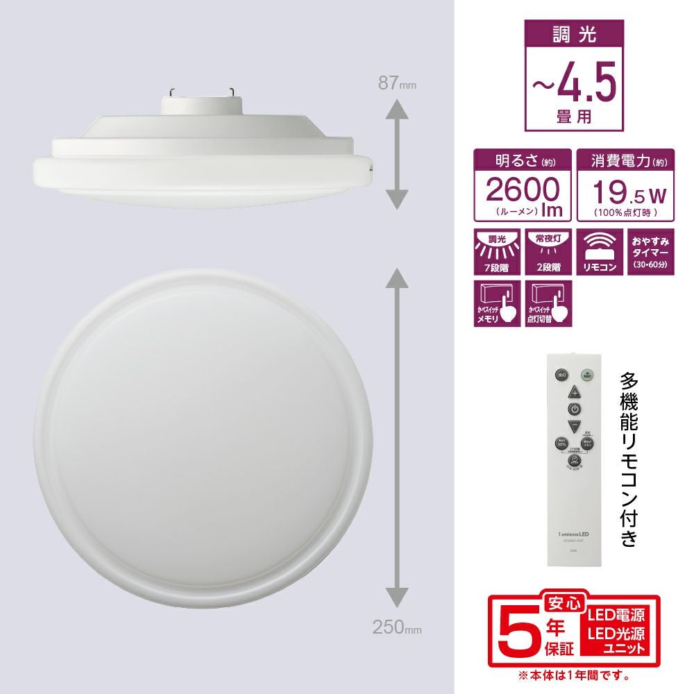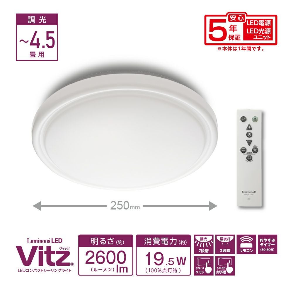 他の画像を見る 【5年保証】LuminousLED(ルミナス) LEDコンパクトシーリングライト Vitz(ヴィッツ) ~4.5畳用 調光モデル VZ25-A45DX 【SH】 販売価格 ¥ 3,480 税込 在庫切れ 入荷お知らせ お気に入りに登録する