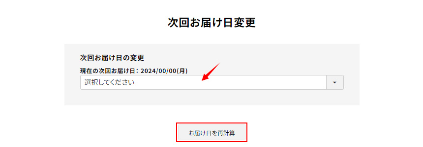 画面が変わり、次回のお届け日変更ページが表示されます。