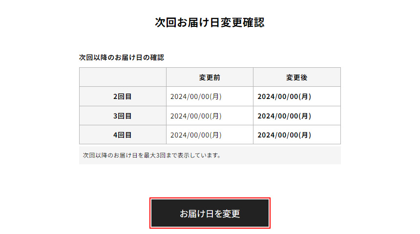 画面が変わり、次回お届け日変更確認ページが表示されます。