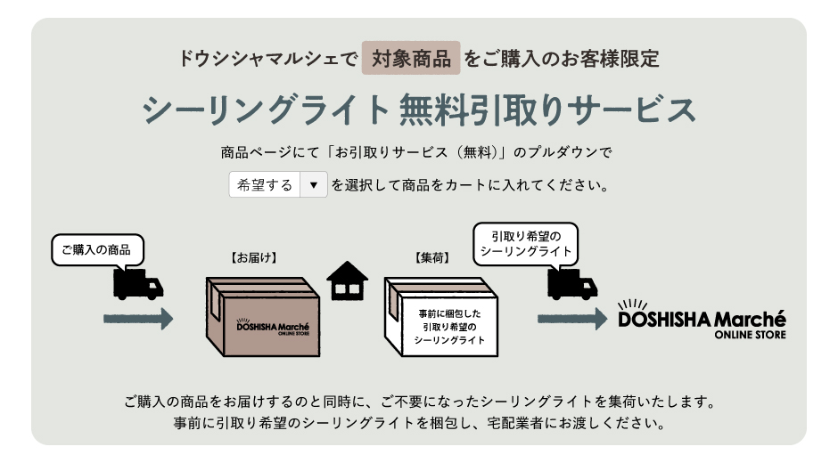 - 3.事前に引取り希望のシーリングライトを梱包し、商品をお届けの際に宅配業者にお渡しください。