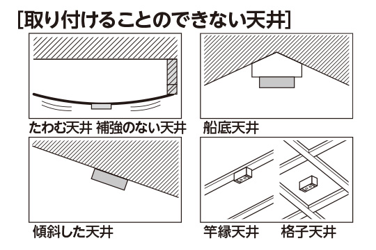 取り付ける天井の状態をご確認ください(下図のような天井になっていないことを確認)。