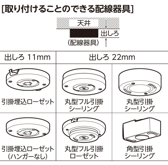 取り付ける天井の配線器具を確認し、出しろの計測・確認ください。