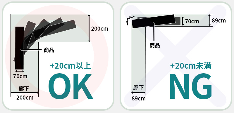 搬入には商品の箱サイズに+20cm以上のスペースが必要になります。