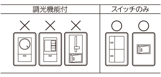 ※イラストのようなスイッチ以外でも、調光機能の付いたスイッチは使用できません。