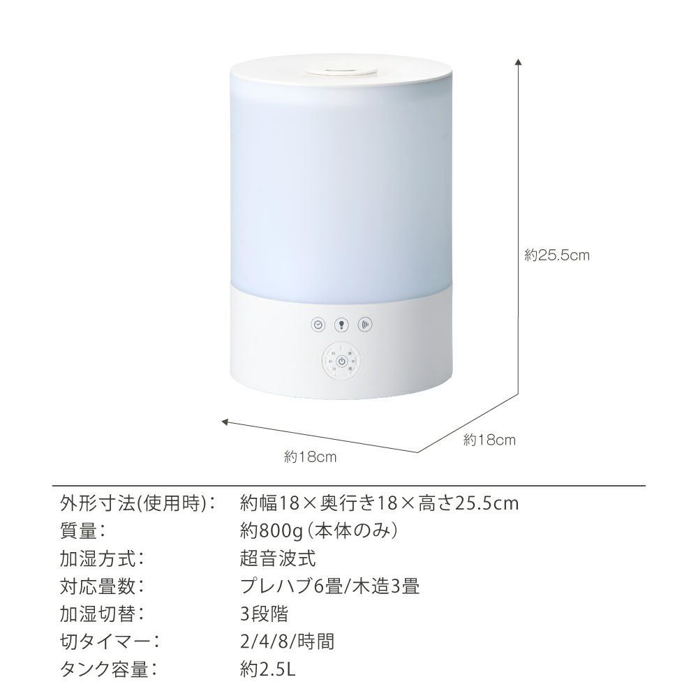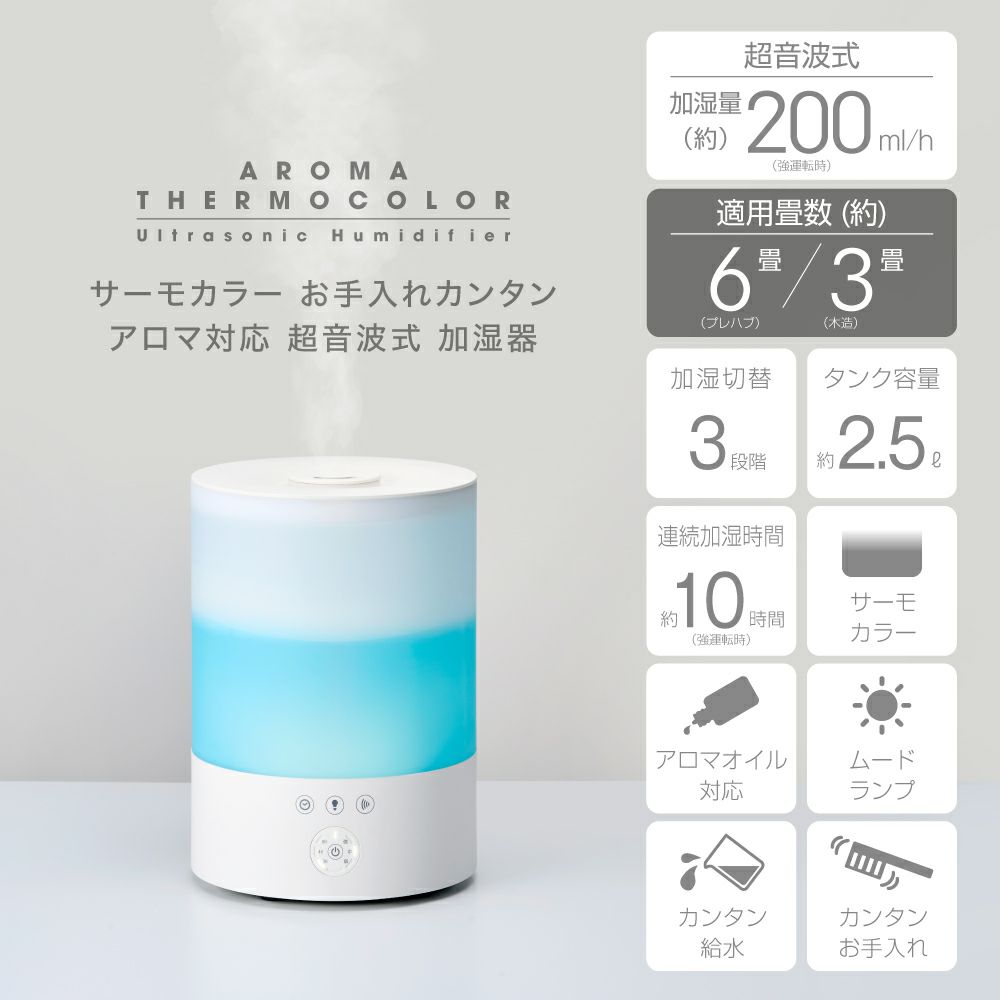 サーモカラーお手入れカンタン アロマ対応超音波式加湿器 ホワイト KWA-202WH【KA】