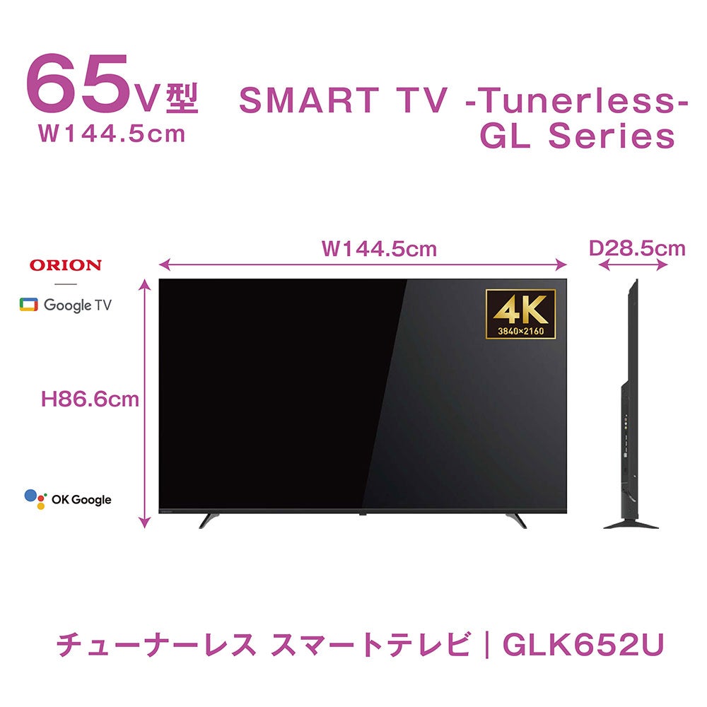 他の画像を見る 送料無料 取付設置サービス ORION(オリオン) GoogleTV搭載 チューナーレス スマートテレビ 65v型 4K対応 GLK652U 【AVT】 販売価格 ¥ 110,880 税込 カートに入れる お気に入りに登録する